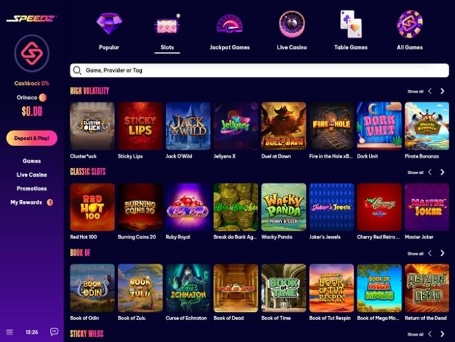 在 Speedz 赌场,玩家可以畅玩来自 90 多家软件供应商的精彩游戏。游戏目录涵盖数十个类别和类型,每个类别下又细分出多种游戏类型,确保每位玩家都能找到心仪之作。这意味着您每次登录都能发现新游戏,同时也能随时重温自己喜爱的游戏。