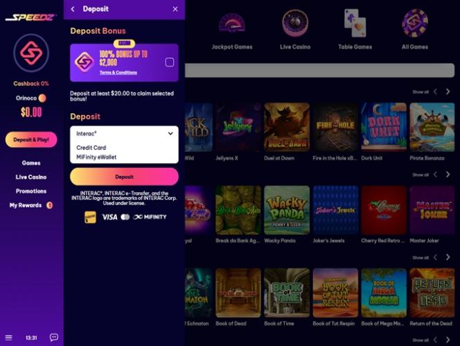 Speedz Casino于2025年正式进军博彩市场,凭借其丰富的赌场游戏选择,包括真钱老虎机、真人荷官游戏、桌面游戏和即时崩溃游戏,吸引了大量来自加拿大和新西兰的玩家。该品牌还提供一系列优惠活动,包括迎新优惠、现金返还奖励和忠诚度计划。