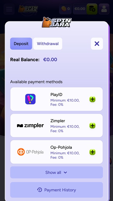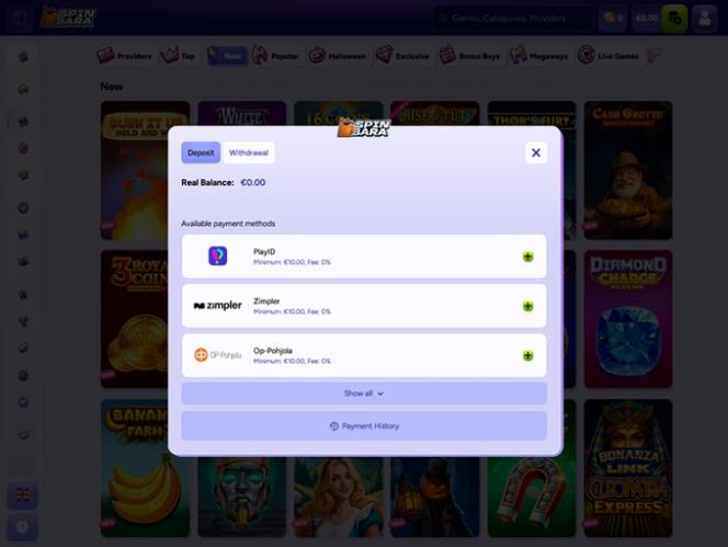 还需注意的是,Spinbara Casino 欢迎来自奥地利、加拿大、瑞士、德国、芬兰、挪威、新西兰的玩家。如果您恰好来自这些地区,您将体验到由一些知名 iGaming 行业公司提供的丰富游戏库,以及精彩纷呈的促销活动,总有一款适合您。