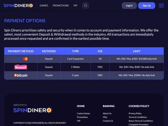 考虑到目前软件供应商的数量,Spindinero Casino 团队在为玩家提供相对多样化的赌场游戏选择方面做得非常出色。事实上,Spindinero Casino 仍有很大的改进空间,我们希望接下来能看到该品牌推出真人赌场游戏。