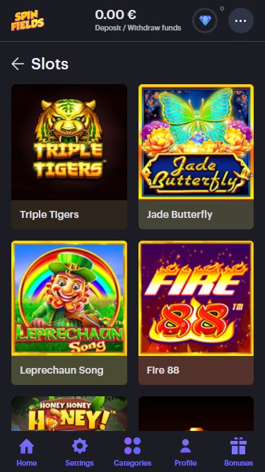 Spinfields 赌场拥有众多热门游戏,有一个单独的现场赌场部分,其中设有专门用于轮盘赌、二十一点、百家乐和扑克的不同房间,但老虎机游戏是其主打产品,因此可以肯定地说,那些老虎机鉴赏家一定会在这里感到宾至如归!
