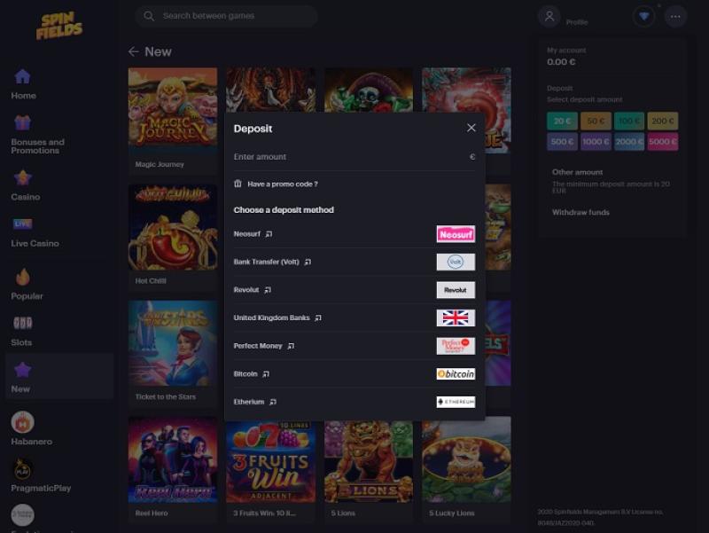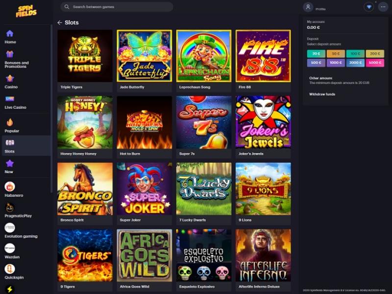 Spinfields Casino 是一家在线赌场,由 Spinfields Management BV 拥有和运营,该公司位于库拉索岛,注册号为 154315,持有 Antillephone NV License Validator 颁发的许可证,编号为 8048/JAZ2020-040。