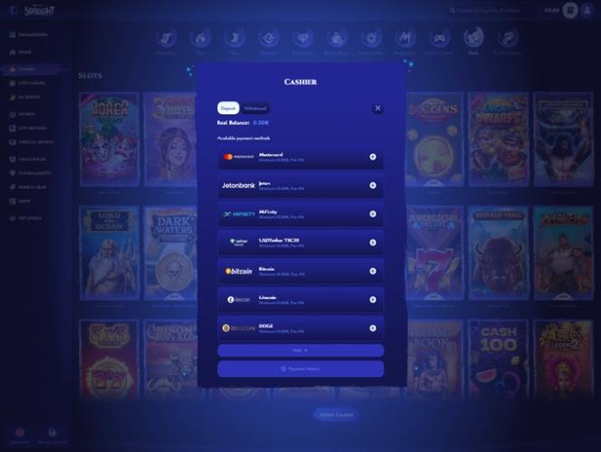 无论您使用传统支付方式,还是已转向加密货币并偏好最新的数字货币趋势,Spinight Casino 都能提供多种选择来满足您的需求。不过,您需要记住,银行选项因国家/地区而异,其中一些选项可能并非在所有博彩管辖区都可用,因此请务必熟悉可用的选项。