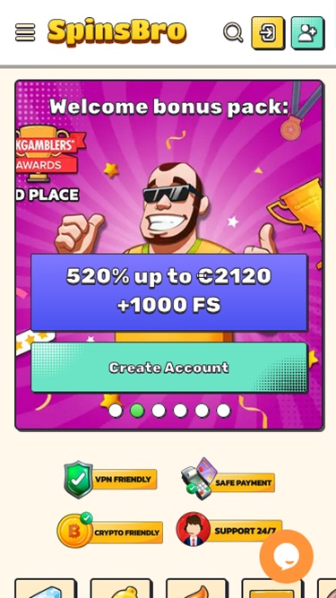 SpinsBro 的网站外观赏心悦目。它没有像许多在线赌场那样千篇一律的标准化界面,而是卡通风格,非常有趣。