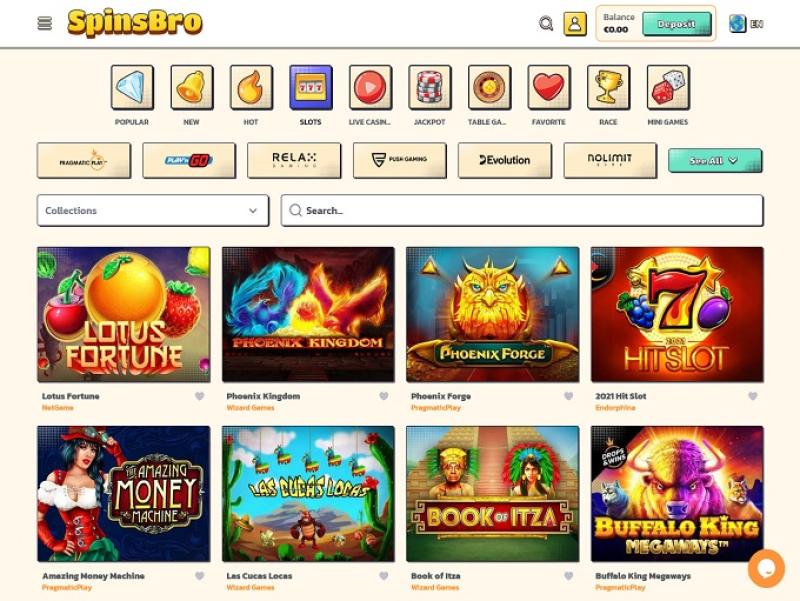SpinsBro 汇聚了业内一些最大的游戏供应商,让您畅玩众多顶级老虎机游戏。其中一些热门游戏包括:Push Gaming、 Pragmatic Play 、Play 'N Go、Rela Gaming、Ruby Play、Playpearls 等等。