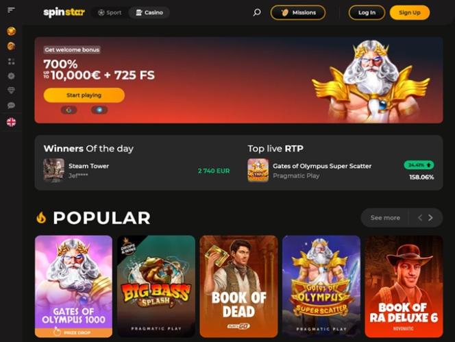 Spinstar Casino 是一家受哥斯达黎加博彩委员会监管和许可的在线赌场和体育博彩网站。该运营商主要面向来自荷兰和希腊的玩家。该赌场提供希腊语、英语和法语的本地化版本,其图形解决方案和营造的氛围给我们留下了深刻的印象。