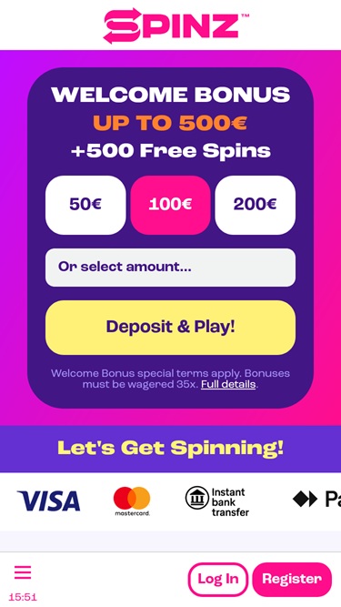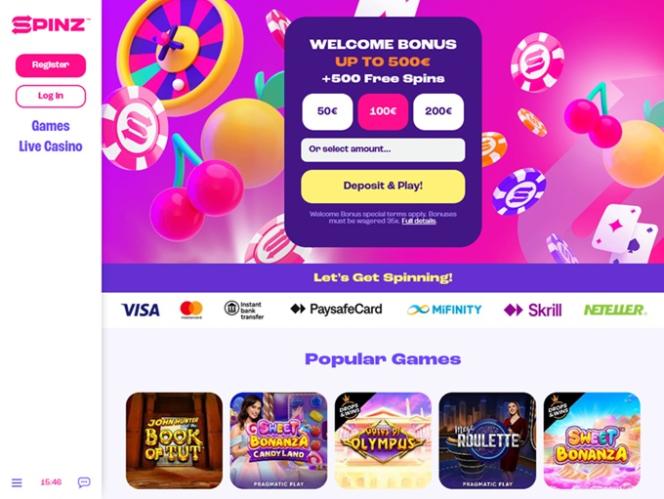 Spinz Casino 与业内知名公司合作:Evolution Gaming、NetEnt、Yggdrasil、Relax Gaming 等,为玩家提供高品质的娱乐。
