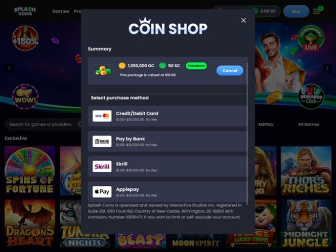 Splash Coins 欢迎玩家来⾃ Ohio