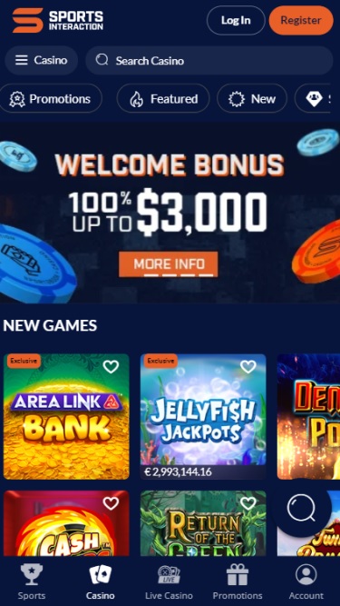 Sports Interaction Casino (SIA) 完全英国赌场不允许玩家来⾃ Ohio
