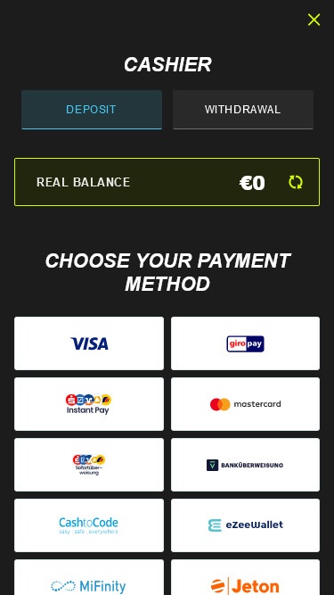 这家现代化的运营商提供多种银行业务方式,例如支付卡、热门电子钱包和直接银行转账;如果您已切换到加密货币支付,该运营商也能为您提供服务。请注意,可用的选项取决于各个国家/地区,并且提款时间也令人满意。
