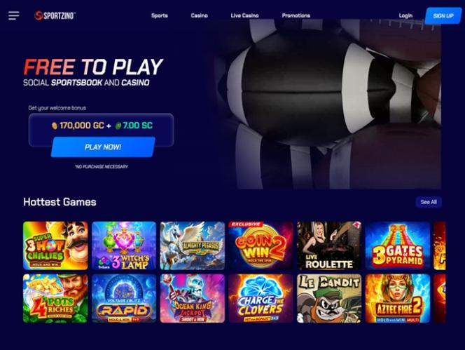 Sportzino 是一个引人入胜的社交游戏平台,拥有激动人心的抽奖元素,旨在吸引美国玩家(受部分州政府限制)。它拥有丰富多样的赌场游戏,包括在线老虎机、碰撞游戏和钓鱼游戏,同时还提供体育博彩。玩家有机会参与各种促销活动、奖金和累积奖金,并参与锦标赛赢取金币和抽奖币。