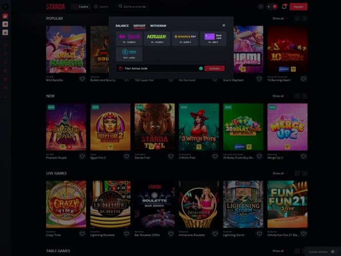 Banking银⾏业务选项 的 Starda Casino