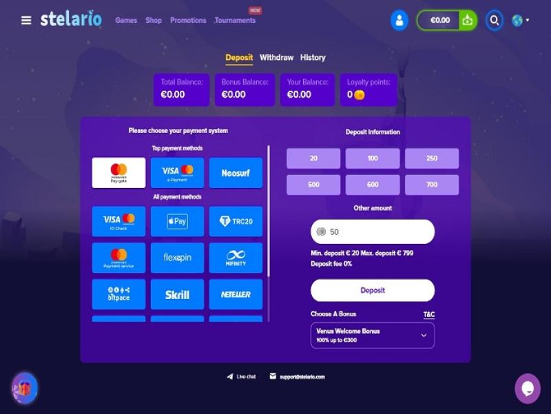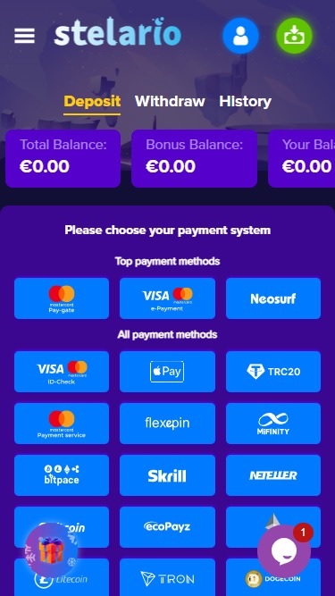Stelario 赌场由 Microgaming, Playtech, BetSoft, 1x2gaming, Amatic Industries, Big Time Gaming, ELK Studios, Evolution Gaming, Ezugi, Habanero Systems, Novomatic, Play'n GO, playson, Quickspin, Relax Gaming, Thunderkick, Vivo Gaming, Yggdrasil, Endorphina, Wazdan, GameArt, Booming Games, Stakelogic, Pragmatic Play, Nolimit City, Red Tiger Gaming, Booongo, Spinomenal, Felix Gaming, Red Rake Gaming, Xprogaming, Fugaso, Belatra Games, Fantasma Games, FUGA Gaming, Platipus Gaming, BGAMING, Concept Gaming, Evoplay, SA Gaming, OneTouch, Electric Elephant Games, Pocket Games Soft, Triple PG, Bulletproof Games, Gluck Games, Mascot Gaming, NetGame Entertainment, Gameburger Studios, Golden Rock Studios, Swintt, ThunderSpin, Mancala Gaming, HungryBear Gaming, KA Gaming, Blue Guru Games, Games Global, Amusnet Interactive, Wizard Games, Ash Gaming, CT Interactive, Greentube, Igrosoft, Leander Games, Merkur Gaming, NeoGames, Pariplay, Push Gaming, Cayetano, Reel Time Gaming, BF Games, The Games Company, Reflex Gaming, Storm Gaming Technology, Apollo Games, Wild Streak Gaming, Jade Rabbit Gaming, STHLM Gaming, RubyPlay, 4ThePlayer, AvatarUX, Gamevy, High 5 Games, Groove Gaming, Pirates Gold Studios, ReelPlay, Rarestone Gaming, BB Games, Black Pudding Games, Boomerang Studios, Hacksaw Gaming, Max Win Gaming, Bang Bang Games, Gamzix, SilverBack Gaming, Peter And Sons, Onlyplay, Gamebeat, Playgon, Aviatrix, AGT Software, Winfinity, 3 Oaks Gaming, LiveGames, Spribe, Print Studios, BetSolutions, Four Leaf Gaming, Live 5, Reel Kingdom, Popiplay, Galaxsys, PlayAce and Turbo Games提供支持,网站的游戏通过其网页平台提供,您可以使用您选择的网络浏览器访问。该网站导航便捷,我很快就注册了账户。该赌场提供移动端支持,因此您也可以在手机或平板电脑上畅玩。
