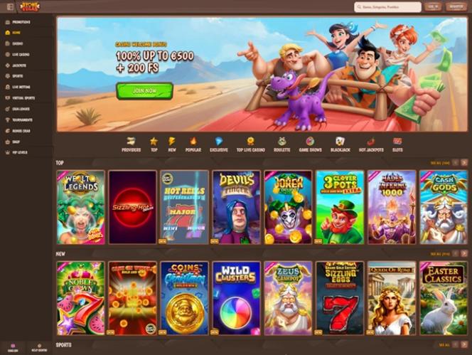 我们立刻就被网站的设计和整体主题所吸引,其灵感源自举世闻名的动画片《摩登原始人》。玩家将体验到史前主题,其中有各种人物的精美艺术作品和明亮的色调,与网站的用户界面完美融合,易于浏览。