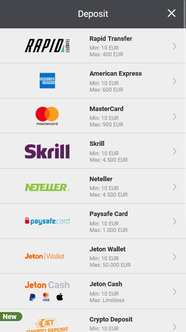如果我们补充说,该运营商与一些最好的在线赌场软件供应商合作,例如:Quickspin、Relax、Evolution Gaming、BetSoft、Yggdrasil 和许多其他游戏开发商,那么您就可以享受到大量高质量的娱乐。