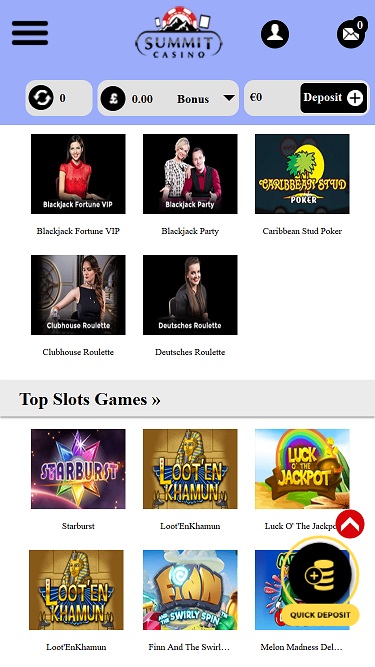 Summit Casino 由 Cozy Games提供支持,其游戏通过基于网页的即时游戏平台提供,玩家可以直接通过设备的网络浏览器进行游戏。这对玩家来说非常有利,因为他们无需下载笨重的软件。随着您访问的在线赌场越来越多,下载软件很快就会变得繁琐。如上所述,Summit Casino 也支持移动游戏,这是该赌场的优势。负责任赌博, 客服⽀援 & 安全性