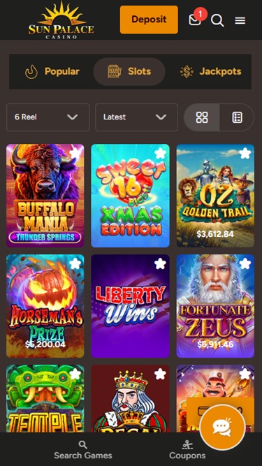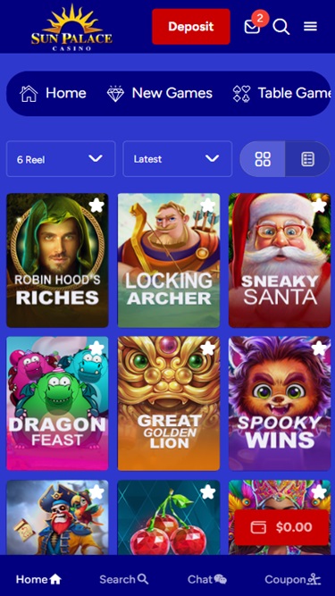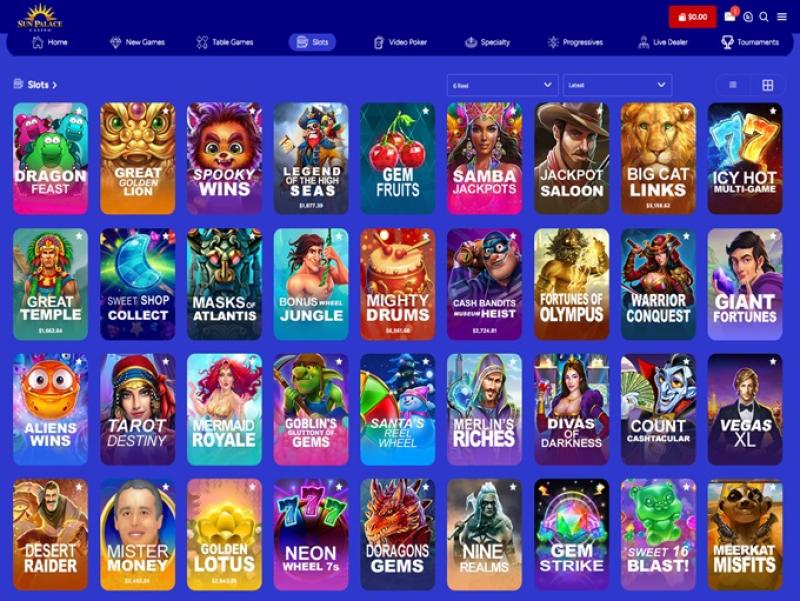 Sun Palace Casino 由 Real Time Gaming and Spinlogic Gaming提供支持,提供数十款游戏,包括老虎机、桌面游戏、视频扑克等等。老虎机的制作水准略显不足,但桌面游戏和视频扑克的画面和玩法都相当不错。