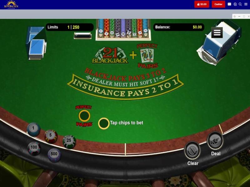 Sun Palace Casino Blackjack with Perfect Pairs (Real Time Gaming)展开