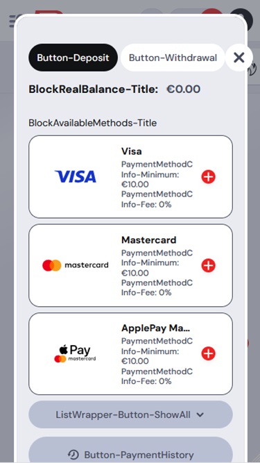 关于银行选项,我们很高兴看到该赌场品牌为玩家提供了多种资金管理方式,包括Visa 、 Mastercard 、 Apple Pay 、银行电汇、 Neteller 、 Skrill 、 Paysafecard 、 Interac等。玩家还可以使用多种加密货币,例如比特币、比特币现金、卡尔达诺、狗狗币、以太坊、莱特币、 USD Coin 、 Tether和瑞波币。