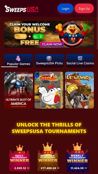 SweepsUSA 是目前比较引人注目的抽奖网站之一,提供各种各样的游戏,从老虎机和真人荷官到桌面游戏、碰撞游戏等等,以及大量的奖金来保持游戏的乐趣。