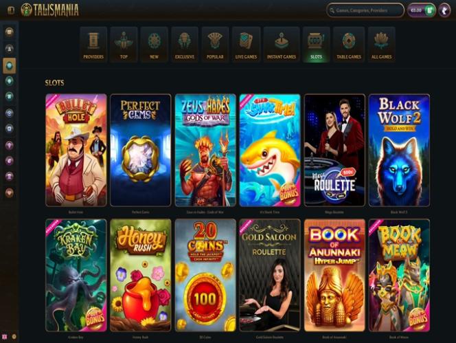 由于在线老虎机是玩家中最热门的游戏,Talismania Casino 提供了丰富的老虎机游戏选择,适合所有经验水平的玩家。运营商拥有超过六千款游戏,并确保这些丰富的游戏种类能够吸引玩家并让他们乐在其中。