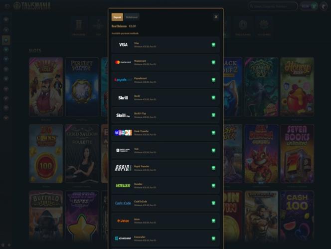 - Talismania Casino 保留随时执行验证过程并要求提供完成验证所需的个人身份证明文件的权利。