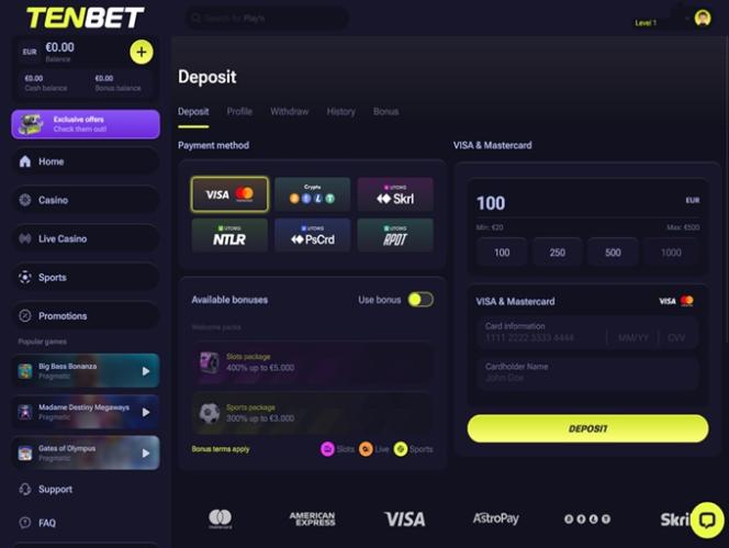 就促销和奖金而言,TenBet Casino 提供的优惠列表并非最丰富。但新账户仍然可以领取存款匹配优惠形式的迎新礼包。相比之下,现有玩家可以领取专为体育博彩玩家和赌场玩家设计的每周充值奖金。