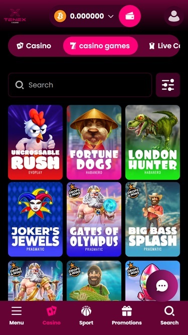 最后,Tenex Casino 还设有专门的体育博彩版块,您可以在这里投注全球数百场体育赛事和电竞比赛。体育博彩平台功能齐全,即使是最具体的投注需求也能得到满足,包括滚球投注等所有您期望的功能。