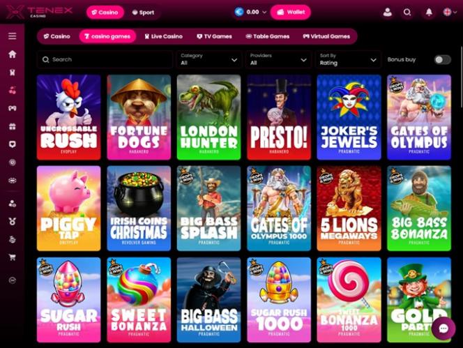 例如,在 Tenex Casino 注册一个账户。您将能够畅玩数量惊人的游戏,这些游戏涵盖数十个类别和类型供您选择。该品牌总共获得了超过 110 家不同软件供应商的授权,如此庞大的数量即使是最资深的玩家也会感到满意。