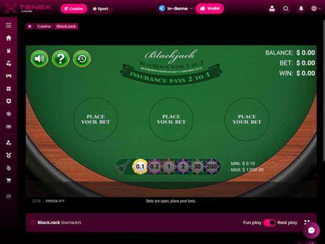 当然,并非所有玩家都会把时间花在玩在线老虎机上。其他玩家则会沉迷于 Tenex 种类繁多的桌面游戏,包括轮盘、二十一点、百家乐和扑克。所有这些经典桌面游戏都提供真人荷官和电脑版本,其中最受欢迎的版本是……