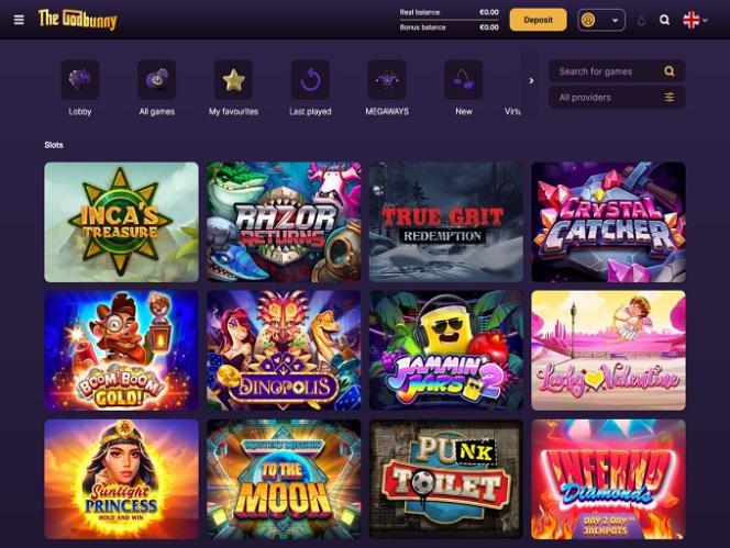 老虎机爱好者在 Godbunny 赌场一定会玩得不亦乐乎,因为他们有海量单臂强盗机可供选择。这里最受欢迎的游戏包括Shining Crown、Crazy Monkey、The Treasures of Aztec、Supreme Hot、Sun of Egypt 2 Hold and Win 和 Royal Coins Hold and Win 。