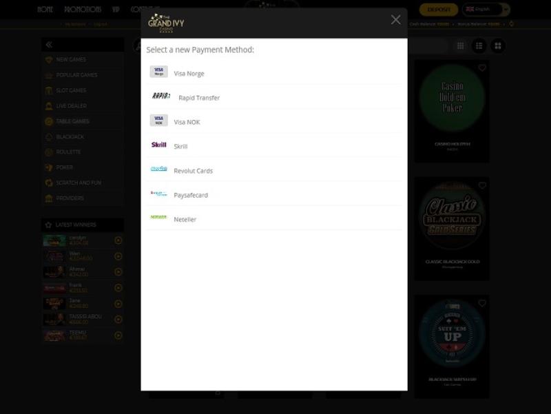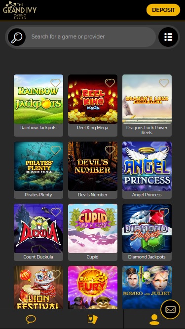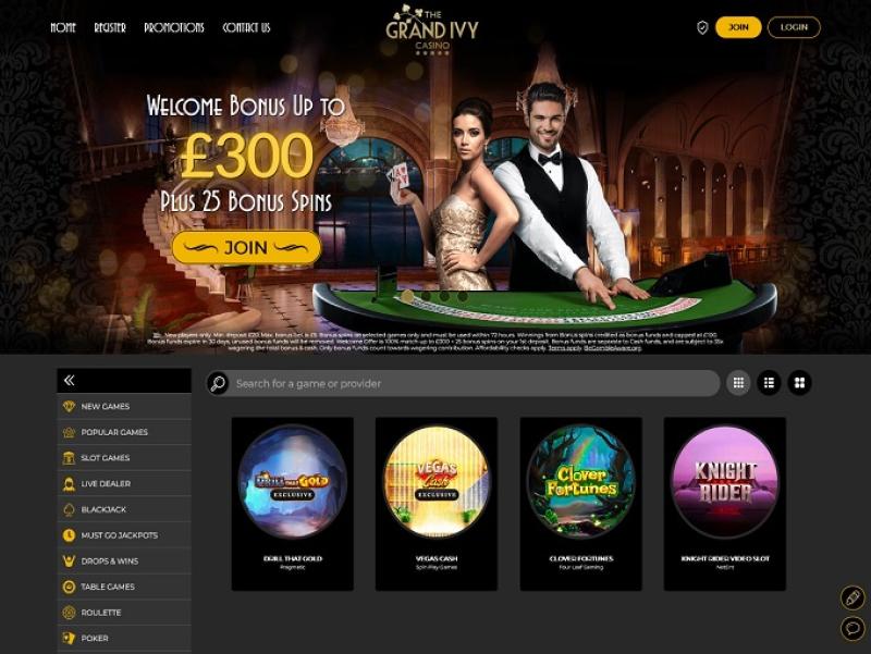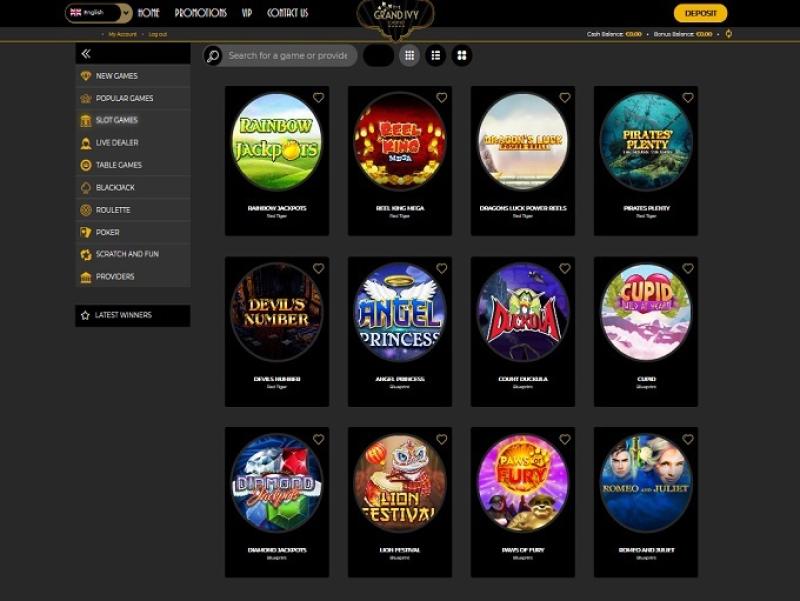 Grand Ivy 赌场由 Microgaming, Net Entertainment, 1x2gaming, Barcrest, Big Time Gaming, ELK Studios, Evolution Gaming, EYECON, Ezugi, lightningboxgames, Oryx, Play'n GO, Rabcat, Relax Gaming, Thunderkick, Wazdan, Realistic Games, Stakelogic, Pragmatic Play, Nolimit City, Felt Gaming, Red Tiger Gaming, IGT, Spinomenal, Fantasma Games, SYNOT Games, Kalamba, Revolver Gaming, Skywind, Spinmatic, Triple Edge Studios, Northern Lights Gaming, Stormcraft Studios, Switch Studios, Electric Elephant Games, Pocket Games Soft, All41 Studios, Gluck Games, Gameburger Studios, Pulse 8 Studios, Neon Valley Studios, Golden Rock Studios, Spearhead Studios, Swintt, Shuffle Master, SpinPlay Games, HungryBear Gaming, GONG Gaming, Blue Guru Games, Lady Luck Games, Buck Stakes Entertainment, Design Works Gaming, Games Global, 2by2 Gaming, Ainsworth, Bally Technologies, Blueprint Gaming, Endemol Games, Greentube, Leander Games, Merkur Gaming, NextGen, NYX Interactive, Push Gaming, Tom Horn Gaming, WMS, Inspired Gaming, Gaming Realms, SG Interactive, Red7Mobile, CORE Gaming, Scientific Games, Side City Studios, Reel Time Gaming, Authentic Gaming, Iron Dog Studio, Old Skool Studios, Foxium, Betdigital, Just For The Win, Storm Gaming Technology, PearFiction Studios, Apollo Games, Wild Streak Gaming, Slingshot Studios, Fortune Factory Studios, Jade Rabbit Gaming, 4ThePlayer, AvatarUX, Gamevy, Crazy Tooth Studio, NetGaming, High 5 Games, ReelPlay, AGS Interactive, Alchemy Gaming, Black Pudding Games, Hacksaw Gaming, Max Win Gaming, Gold Coin Studios, Half Pixel Studios, SilverBack Gaming, Peter And Sons, Eurostar Studios, Aurum Signature Studios, Armadillo Studios, Lucksome Gaming, Area Vegas, RAW iGaming, Leap Gaming, Wishbone Games, Spribe, Circular Arrow, Print Studios, Gaming Corps, HammerTime Games, Four Leaf Gaming, INO Games, Nailed It! Games, Live 5, Atomic Slot Lab and Neko Games提供支持,其游戏通过基于网页的即时游戏平台提供,玩家可以通过网页浏览器注册、存款和玩游戏。此外,赌场还提供功能丰富的移动网站,让玩家可以使用智能手机和平板电脑玩游戏。