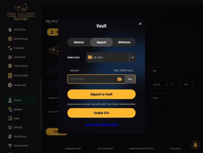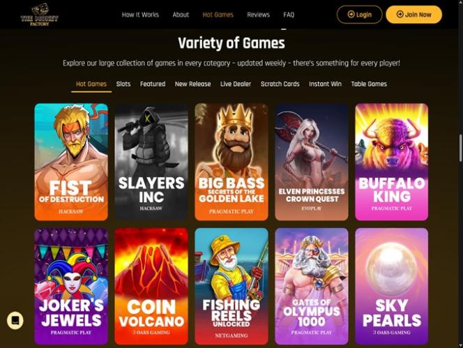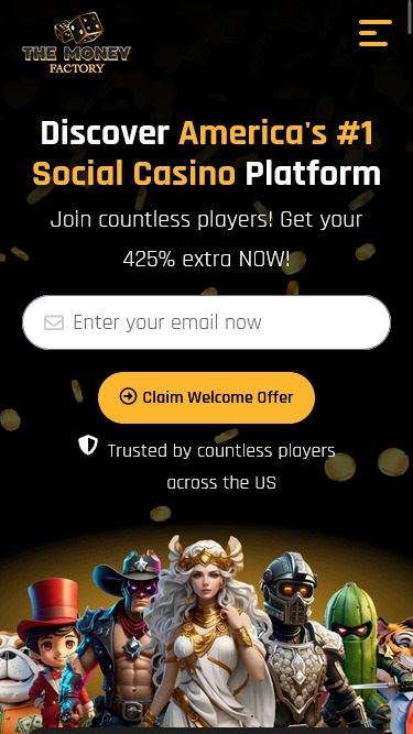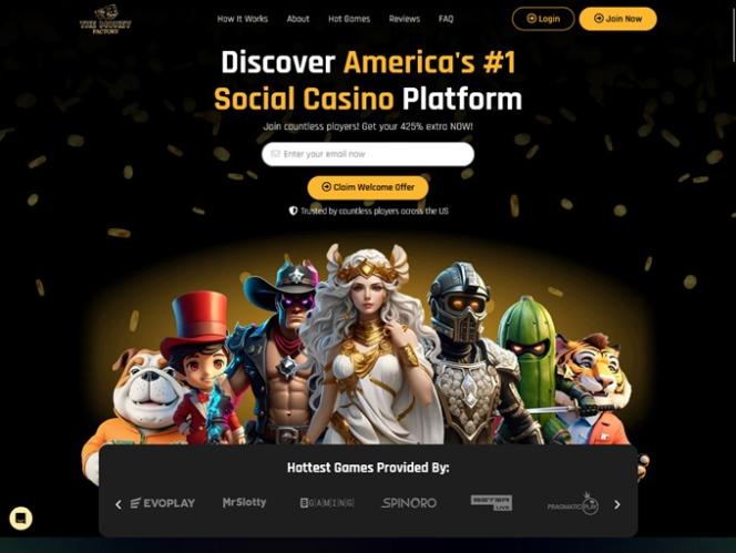 Money Factory 是一家社交赌场,欢迎来自美国(爱达荷州、路易斯安那州、密歇根州、蒙大拿州、内华达州、华盛顿州以及美国其他边远地区除外)的玩家。进入网站后,玩家会立即感受到这家社交赌场在设计上倾注了大量心血。网站主色调由深色背景和金色点缀,营造出奢华的视觉效果,美观且易于掌握和浏览。玩家不会对用户界面感到困扰,因为浏览所有游戏和版块都非常便捷。