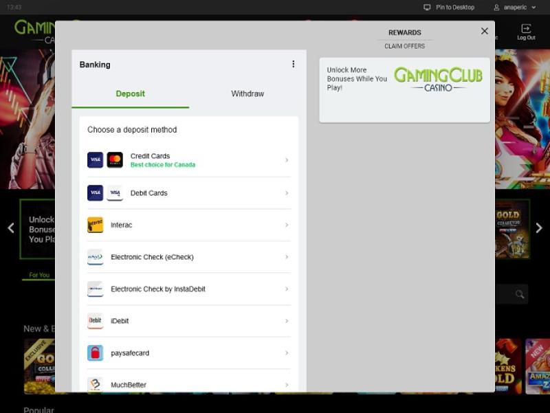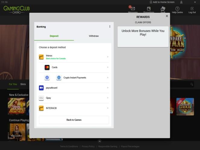 Gaming Club Casino 由 Microgaming, Net Entertainment, Evolution Gaming, Ezugi, Rabcat, Pragmatic Play, Red Tiger Gaming, Triple Edge Studios, Northern Lights Gaming, Stormcraft Studios, Switch Studios, Electric Elephant Games, All41 Studios, Gameburger Studios, Pulse 8 Studios, Neon Valley Studios, SpinPlay Games, Real Dealer Studios, GONG Gaming, On Air Entertainment, Buck Stakes Entertainment, Games Global, Old Skool Studios, Foxium, Just For The Win, PearFiction Studios, Slingshot Studios, Fortune Factory Studios, Crazy Tooth Studio, Alchemy Gaming, Snowborn Games, Gold Coin Studios, Half Pixel Studios, Eurostar Studios and Aurum Signature Studios提供支持,拥有数百款游戏库。您可以通过网站上的即时游戏平台访问赌场,直接通过网页浏览器进行游戏。此外,我们还提供移动网站,方便您通过智能手机或平板电脑进行游戏。