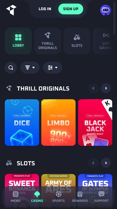 该品牌采用完全响应式赌场平台,因此无论玩家使用平板电脑、智能手机还是个人电脑,都能享受流畅的游戏体验。网站的现代化设计能够完美适配不同的屏幕尺寸和分辨率,而不会损失任何质量或功能。您只需确保网络连接稳定可靠,即可尽情探索 Thrill 的精彩游戏。