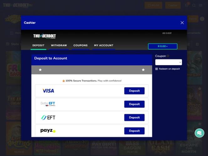 Thunderbolt Casino 是一个在线博彩网站,成立于 2014 年,由Springbok Casino 的运营集团运营。该网站专注于南非博彩市场,目前仅接受来自南非、纳米比亚、斯威士兰、莫桑比克和莱索托的玩家。该赌场拥有数量惊人的游戏和相对较快的支付处理速度,对于居住在上述非洲市场的玩家来说,它是一个不错的选择。