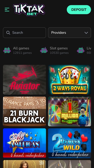 TikTak Bet 也有以下1 182种其他的游戏:种其他的游戏: