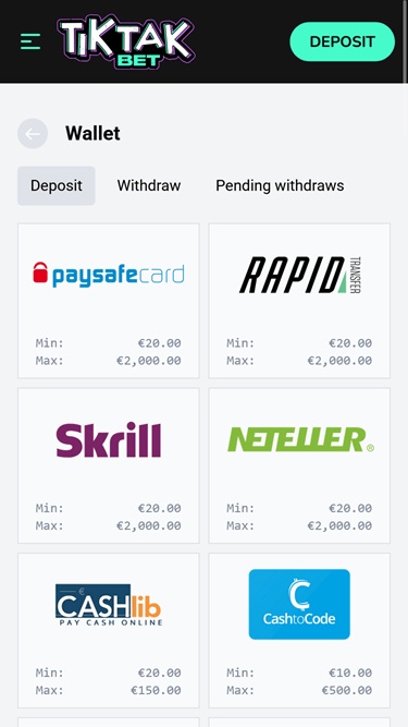 无论您热衷于体育赛事还是赌场促销,运营商都能满足您的需求,包括为首次玩家提供的丰厚迎新优惠!如果您每天都想获得奖励,TikTakBet 的赌场日历也能满足您的需求!您只需每天登录即可兑换升级的促销优惠,例如充值奖金、现金返还、额外旋转等等。