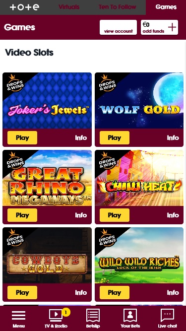 Totesport 赌场由 Barcrest, Pragmatic Play, IGT, Wizard Games, Ash Gaming, Blueprint Gaming, Pariplay, Inspired Gaming, Reel Time Gaming, Wild Streak Gaming, RubyPlay and Lucksome Gaming提供支持,为玩家提供丰富的游戏选择。该赌场采用网页平台,您可以通过网页浏览器直接访问。