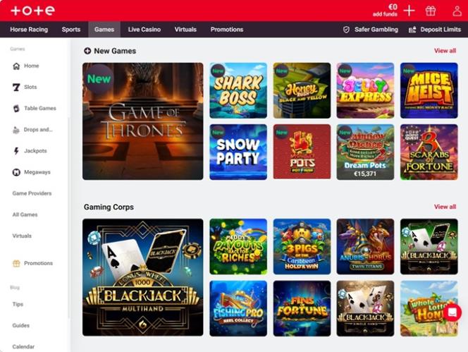 Totesport 赌场由 Microgaming, Net Entertainment, 1x2gaming, Barcrest, Big Time Gaming, ELK Studios, Evolution Gaming, EYECON, Play'n GO, Pragmatic Play, Red Tiger Gaming, Triple Edge Studios, Northern Lights Gaming, Gameburger Studios, Neon Valley Studios, Shuffle Master, SpinPlay Games, Real Dealer Studios, Games Global, Wizard Games, Blueprint Gaming, Pariplay, Inspired Gaming, SG Interactive, Scientific Games, Reel Time Gaming, Foxium, Just For The Win, PearFiction Studios, Wild Streak Gaming, Slingshot Studios, Fortune Factory Studios, Snowborn Games, Gold Coin Studios, Peter And Sons, Lucksome Gaming, Area Vegas, Wishbone Games, Gaming Corps, Nailed It! Games, Reel Kingdom, Oros Gaming, Light & Wonder, Playzia and Octoplay提供支持,为玩家提供丰富的游戏选择。该赌场采用网页平台,您可以通过网页浏览器直接访问。