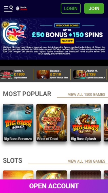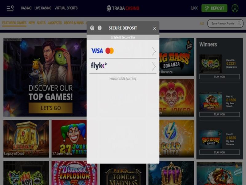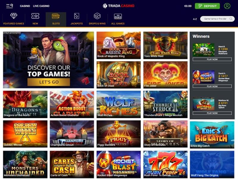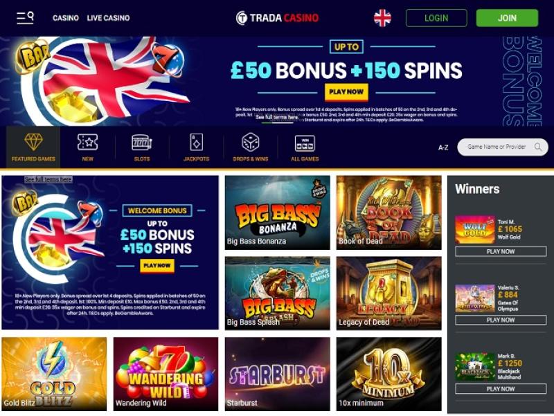 Trada Casino 由 Microgaming, Net Entertainment, BetSoft, 1x2gaming, Amatic Industries, Barcrest, Big Time Gaming, Evolution Gaming, EYECON, Ezugi, iSoftBet, lightningboxgames, Oryx, Play'n GO, playson, Quickspin, Rabcat, Yggdrasil, Wazdan, Realistic Games, Booming Games, Stakelogic, Pragmatic Play, GAMING1, Red Tiger Gaming, Spinomenal, Red Rake Gaming, Skillzzgaming, SYNOT Games, Skywind, Triple Edge Studios, Stormcraft Studios, Switch Studios, All41 Studios, Gluck Games, Gameburger Studios, Neon Valley Studios, SpinPlay Games, Real Dealer Studios, GONG Gaming, Buck Stakes Entertainment, Games Global, Wizard Games, 2by2 Gaming, Ainsworth, Blueprint Gaming, NextGen, Pariplay, Tom Horn Gaming, WMS, Inspired Gaming, SG Interactive, Gamomat, Red7Mobile, Scientific Games, Reel Time Gaming, Authentic Gaming, betiXon, Bally Wulff, Betdigital, Just For The Win, Wild Streak Gaming, Slingshot Studios, Fortune Factory Studios, RubyPlay, 4ThePlayer, Gamevy, Crazy Tooth Studio, ReelPlay, Alchemy Gaming, Snowborn Games, Hacksaw Gaming, Bang Bang Games, Slotmill, Lucksome Gaming and Area Vegas提供支持,其赌场游戏通过基于网页的即时游戏平台提供,最终通过您的互联网浏览器提供所有赌场服务。该平台也支持移动游戏,让玩家可以通过智能手机或平板电脑玩游戏。