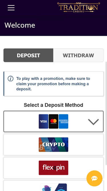 Banking银⾏业务选项 的 Tradition Casino