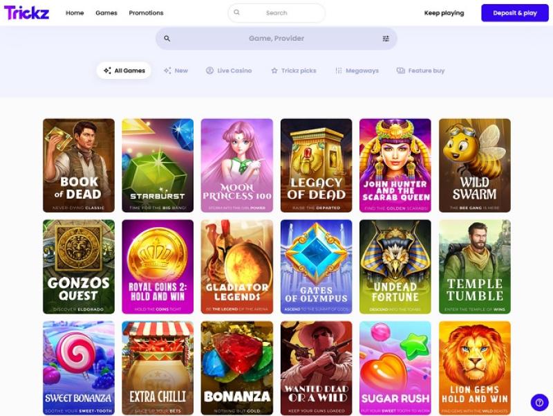 Trickz 拥有出色的真人荷官游戏区。以下是该区包含的一些游戏:疯狂时光 (Crazy Time)、二十一点 (Blackjack)、闪电轮盘 (Lightning Roulette)、免费投注二十一点 (Free Bet Blackjack 1)、无限二十一点 (Infinite Blackjack)、沉浸式轮盘 (Immersive Roulette)、大富翁 (Monopoly)、强力轮盘 (Powerup Roulette)、疯狂抛币 (Crazy Coinflip)、甜蜜富矿 (Sweet Bonanza Candyland)、繁荣之城 (Boom City)、大富翁 (Monopoly)、超级轮盘 (Mega Roulette)、超级转盘 (Mega Wheel)、金条轮盘 (Gold Bar Roulette)、赌场德州扑克 (Casino Hold'em)、一掷千金 (Deal or no Deal)、百家乐 (Baccarat)、番摊 (Fan Tan)、两手牌赌场德州扑克 (2 Hand Casino Hold'em)、闪电骰子 (Lightning Dice)、边注城 (Side Bet City)、龙虎斗 (Dragon Tiger)、免费投注二十一点 (Free Bet Blackjack)、百家乐控制 (Baccarat Control)、Gonzo's Treasure Hunt 等等。