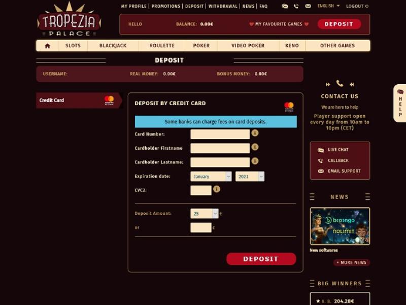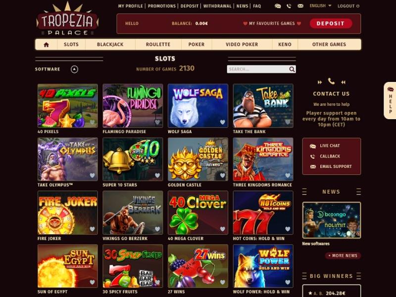 多年来,Tropezia Palace 已成为一家信誉卓著的在线赌场,支付速度非常快。不过,玩家需要注意的是,赌场的客服时间有限,因为他们可能在一天中的某些时段无法获得帮助。
