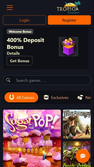 Tropica Casino 由 BetSoft, Genesis Gaming, Rival, Saucify, Vivo Gaming, Arrows Edge, Radi8 Games, Fresh Deck Studios, Woohoo Games, Qora Games, Genii and Dragon Gaming提供支持,这使其拥有庞大的游戏库,其中包含许多美国玩家可能从未尝试过的游戏。您可以通过可下载的软件或即时游戏模式访问该赌场,后者允许您直接通过网页浏览器进行游戏。