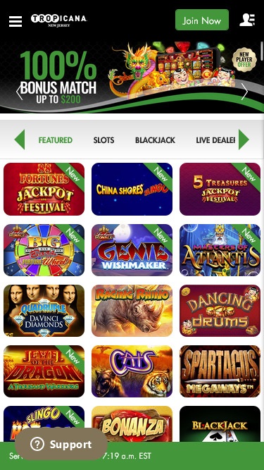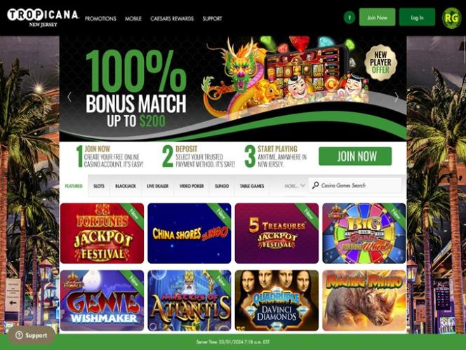 热带赌场 (Tropicana Casino) 是一家位于木板路旁的赌场,于 1981 年开业,为顾客提供老哈瓦那风格的体验。除了赌场之外,该赌场还拥有超过 2,400 间酒店客房和一个设施齐全的娱乐中心。在线博彩是在新泽西州授权在线投注之后出现的,自那时起,热带赌场就一直为客户提供自己的平台。要在热带赌场在线投注,投注者必须年满 21 岁,并且实际位于该州境内。赌场资讯