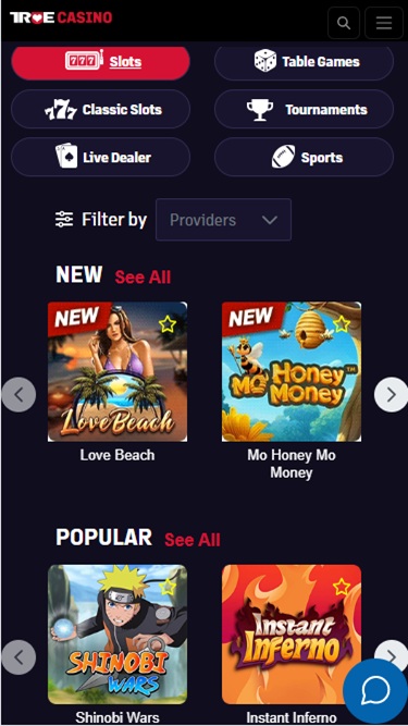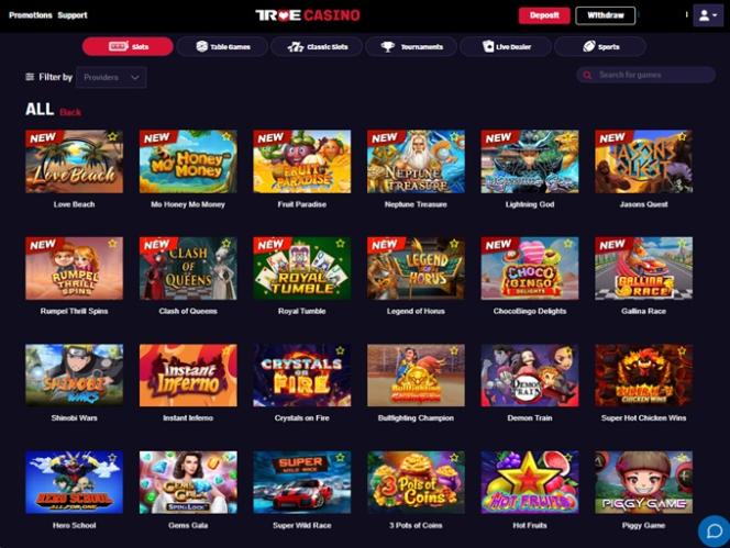 True Poker 的赌场游戏与多家知名软件供应商合作,提供丰富的游戏选择。其赌场游戏库中的知名游戏包括: