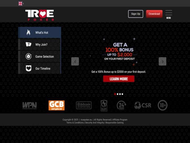 如今,True Poker 不仅提供扑克游戏。多年来,他们已将业务拓展至赌场游戏和体育博彩。无论您是想尝试二十一点、轮盘赌,还是想体验老虎机,True Poker 都能满足您的需求。如果您更喜欢体育赛事,他们还提供体育博彩,您可以对各种赛事进行投注。