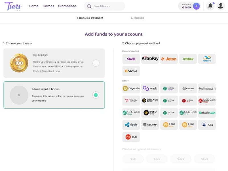 以下是 Tsars Casino 目前提供的促销活动列表。