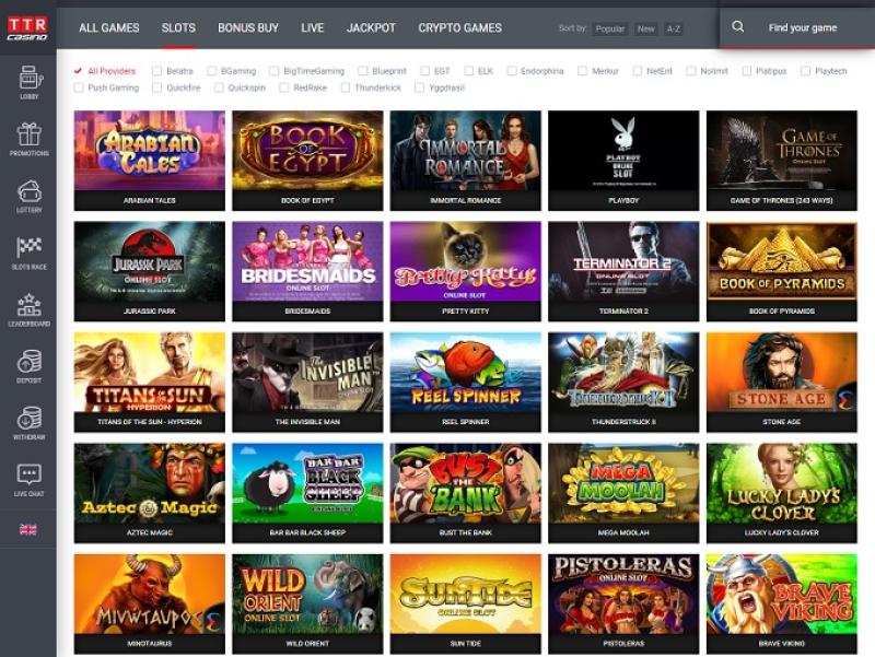TTR 赌场是一家在库拉索岛运营的在线博彩网站,使用比特币及其他标准支付方式。该赌场拥有丰富的游戏库、极快的支付速度和丰厚的奖金,所有这些都让 TTR 赌场非常值得一试。